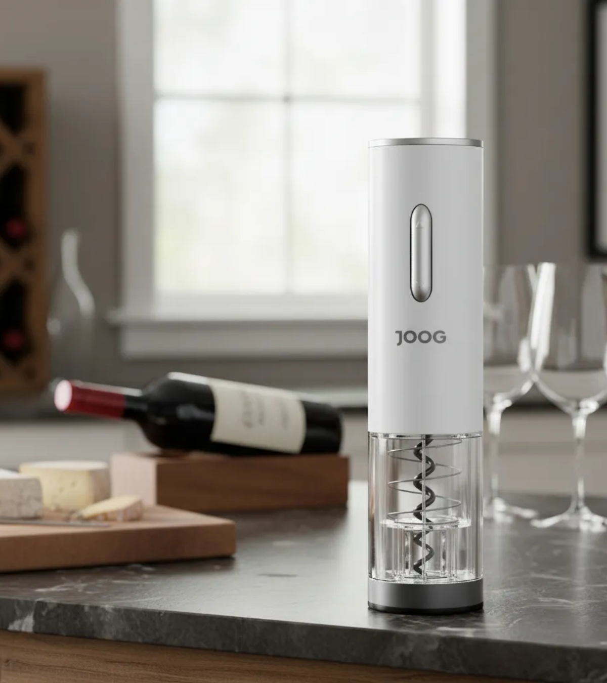 Descubra a magia do vinho fino com o abridor de garrafas elétrico Joog.
